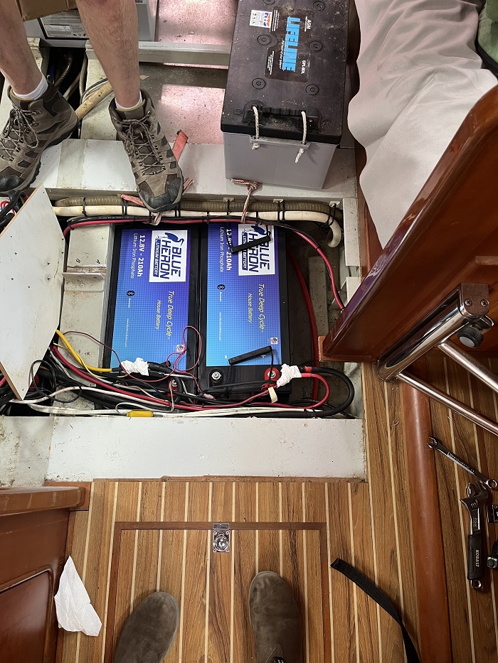 The AGM bank was shoehorned under the cabin sole so I didn’t have a lot of room to make adjustments if the new batteries weren’t a similar size.