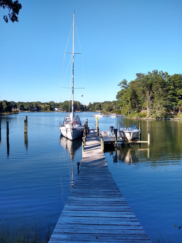 Here’s Pandora at my friend’s dock, a very lovely place to be sure.