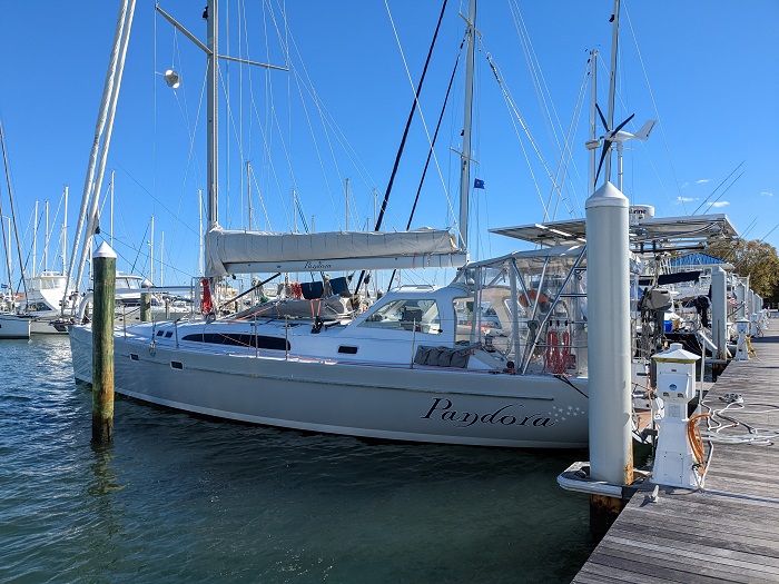 For now, here’s Pandora in her slip in Hampton.   All systems are pretty much ready to go, provisioning is mostly done and we are anxiously waiting more information, hopefully good, on what to expect when we depart.