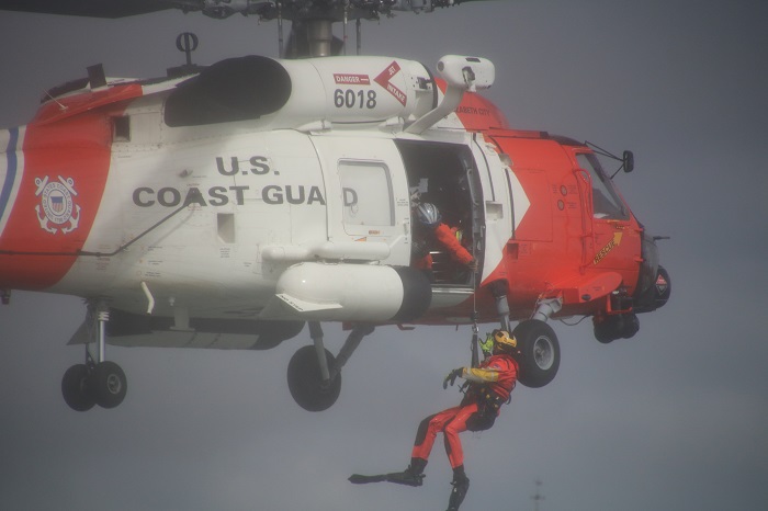 Soon the rescue swimmer was lowered to the water.