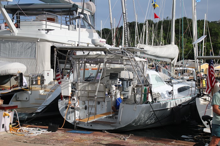 Pandora is on the dock with dozens of other Salty Dawg Boats. The weather is a lot different here than back in CT and it’s another beautiful day.