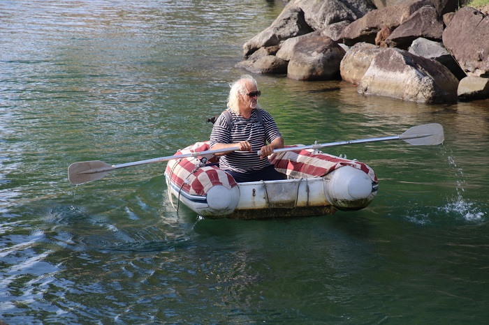 Here’s someone who decided to dock here for the day. I fear that if I spent time alone in the Caribbean, without Brenda, this would be me in a few years. Can you say “man bun?” I do already have shades like his. Somehow I doubt that they are trifocals though.