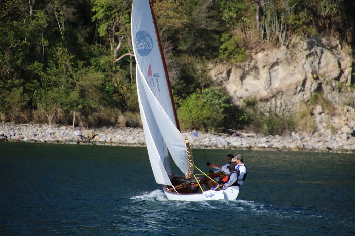 A gust of wind. These boats are very heavily canvased. Everyone hike out!