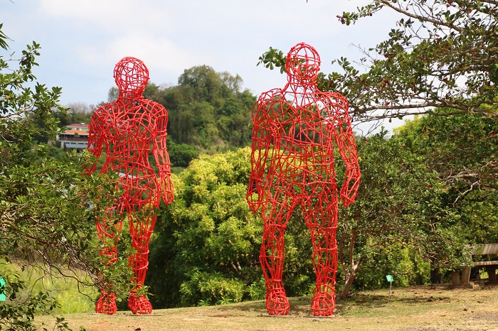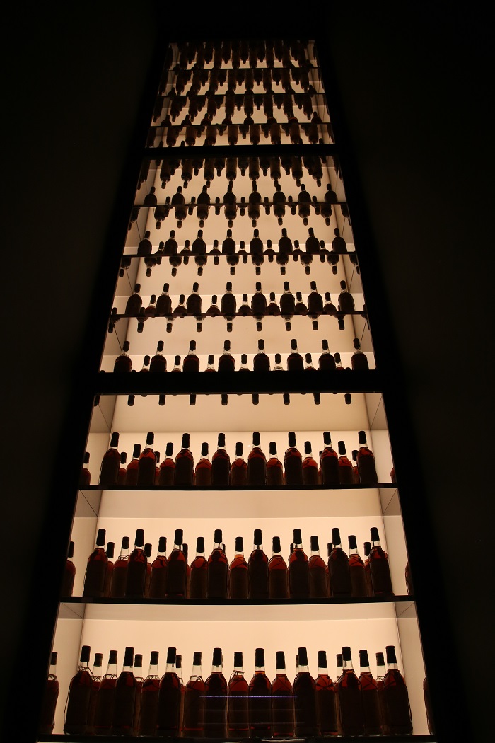 You can tell from the face of the building that this place is something special.  Stainless cladding. The tasting room at Clement is impressive with their product dramatically displayed. This selection is just their basic product.   Pretty good anyway and about $15 a bottle. And the better stuff.  Want to spend $1,000 a bottle, that’s possible but probably not necessary.  This was a particularly dramatic display in a tall stairwell. Upon closer inspection, reflected in mirrors on the bottom of each shelf. These bottles show off the various colors of their rums.If you want to purchase product, and everyone does, they will store your purchases while you tour the sculpture gardens.  We’ve been here before but it’s always worth another look.  Quite dramatic and huge sculptures.And a reminder that this place has been in business for a long time.  Very tropical.And now onto another topic.