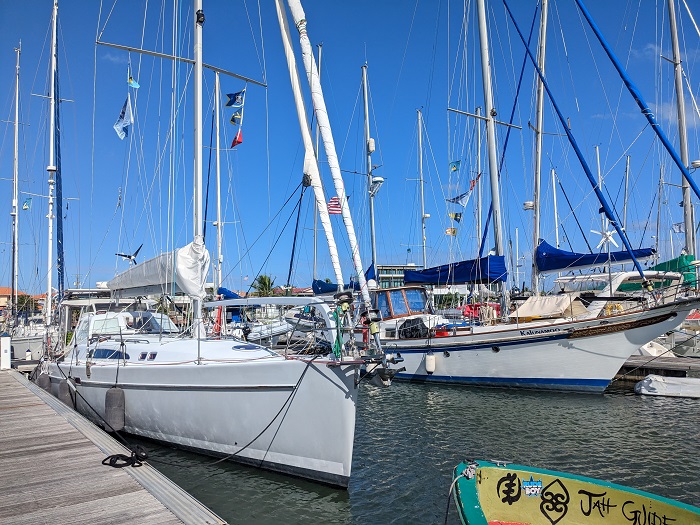 Well, here we are, in Rodney Bay St Lucia where we will meet our friends Peter and Jane for a ten day visit as we make our way back to Antigua. In the next slip over is Kalunamoo, our good friends Bill and Maureen, who we have been buddy boating for over a decade now, having met them during our very first run down the ICW back in 2012.