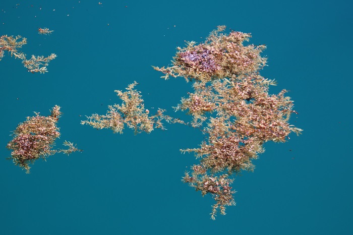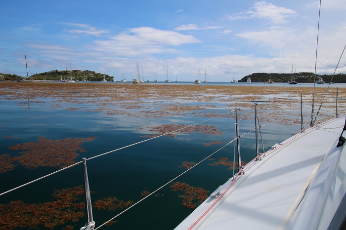You may have read about the “blob” heading toward Florida, a huge mass of Sargasso weed, the size of a state, RI or CT, whatever, that is being driven shoreward.   We have noticed a huge amount of that floating weed this season, sometimes so dense that our prop fouls as we pass through it.