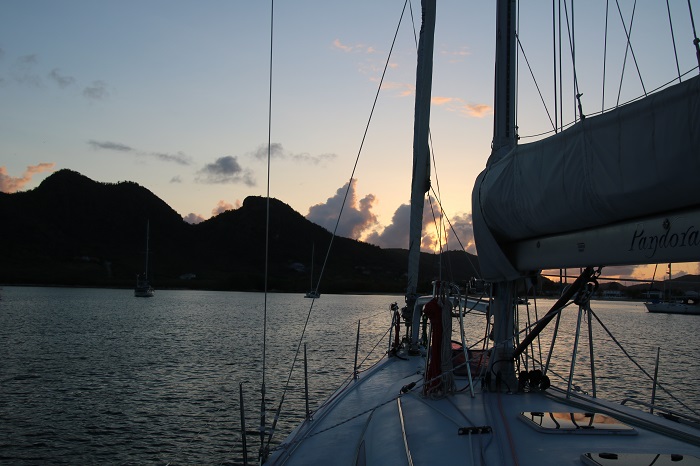 It’s May 2nd and Pandora is anchored in Jolly Harbor, Antigua.