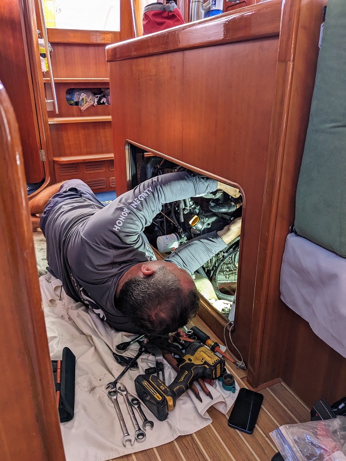 They say that cruising is fixing boats in exotic places and the end of this season is no different. I’ve been dealing with engine cooling system problems for a few weeks now and yesterday as we left the marina the leak, that I thought was fixed, happened again.