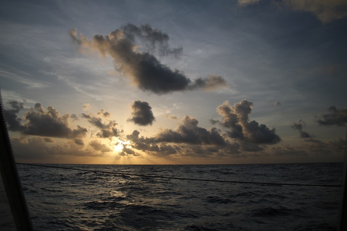 Sunrise this morning was impressive. Generally I take the last watch from 03:00 to 07:00 which gives me an opportunity to get some sleep (sort of) and be on deck when the sun comes up.