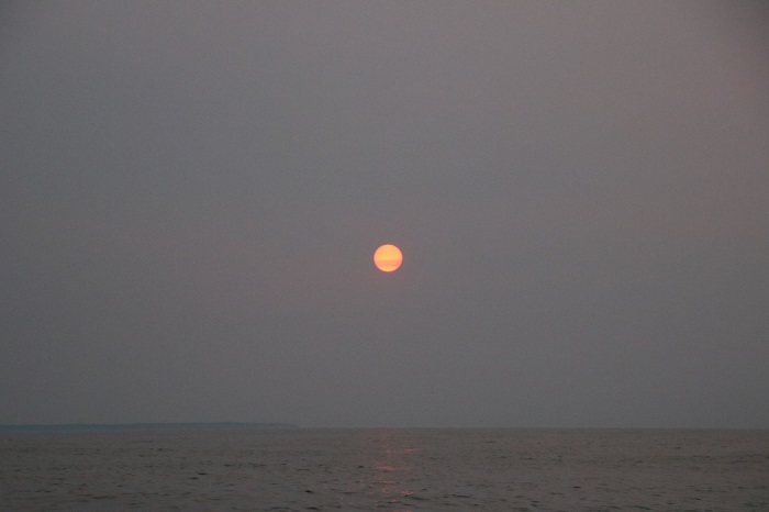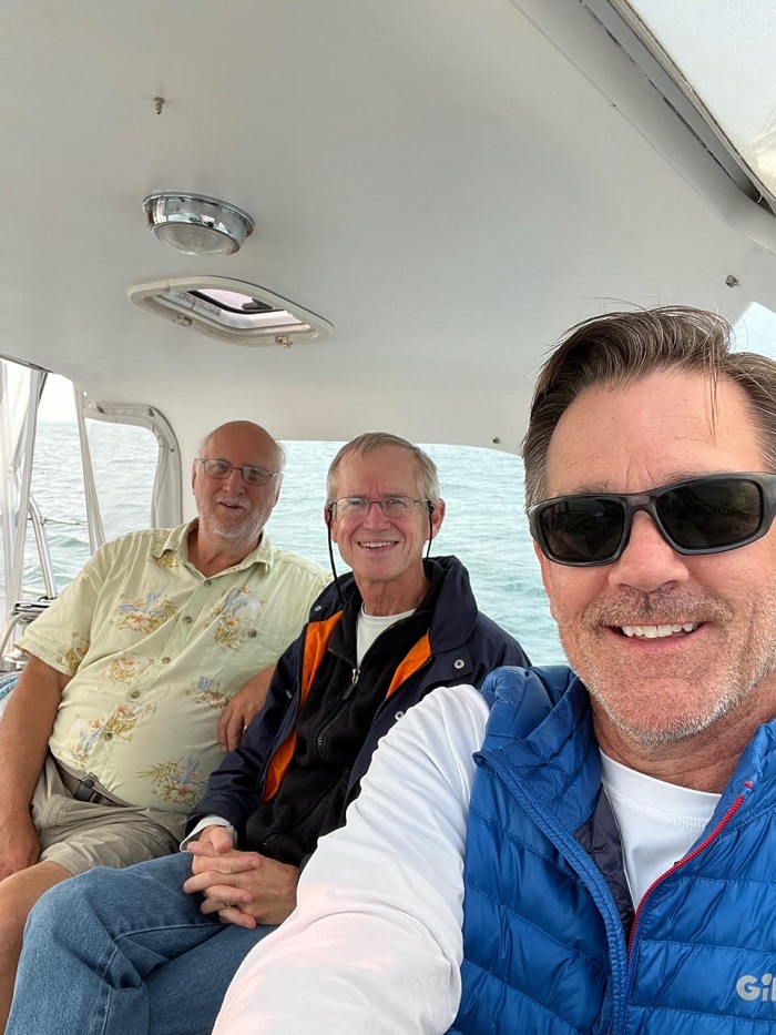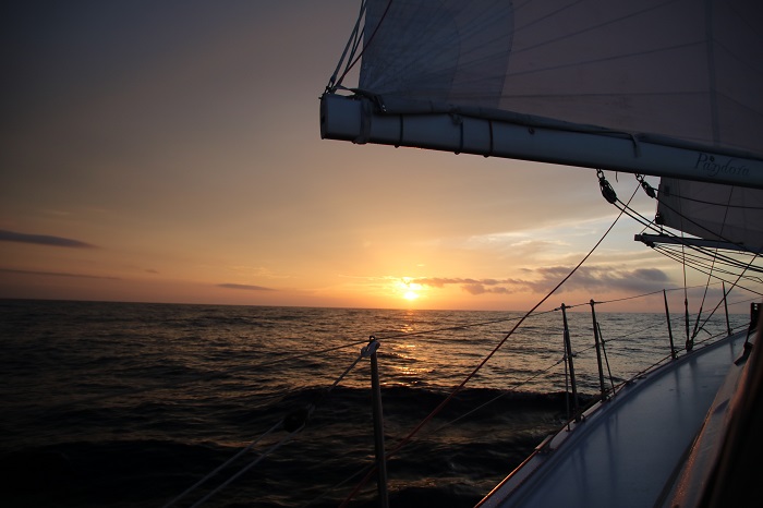 Every day I did a “walk around” to be sure that everything was ok.  One morning I found a nut on the boom gooseneck had backed off quite a bit.   I don’t even want to think about what would have happened if the nut had fallen off and the bolt backed out, allowing the boom to separate from the mast.  That would have wrecked our day, that’s for sure. We saw some amazing sunsets, including a “green flash” that was the most amazing that I’ve seen.  The sun set below the horizon and then there was a very bright green flash that was more like a flashbulb than a sunset.