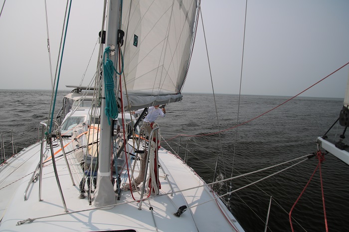 With the wind blowing from the south, perpendicular to the current in the GS, things were plenty rough.  And, to make matters worse, as the wind was directly behind us, we were unable to set ourselves up for a reasonable crossing and ended up stuck in the GS for a lot longer than expected, pointing more toward Nova Scotia than Montauk.