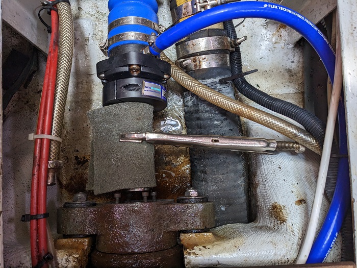 After decades of being a member of Boat US towing, and never a tow.   Who’d have guessed that after sailing over 1,700 miles we’d have a breakdown within a  mile of our destination. As the tow began to build speed, the prop spun wildly and fully separated from the coupling, threating to back out entirely with nothing to hold it from dropping out to the bottom but the shaft zincs.  I had to secure it with an abrasive pad and Vicegrip pliers. After that, a side tow the rest of the way and a lot slower. Finally, on the mooring and a hearty thankyou to our rescuer.We made it.  A happy crew all around.  Every year I seriously think about leaving Pandora in Trinidad and never do.  And, about half way home I begin to really question my decision and this year was no different.