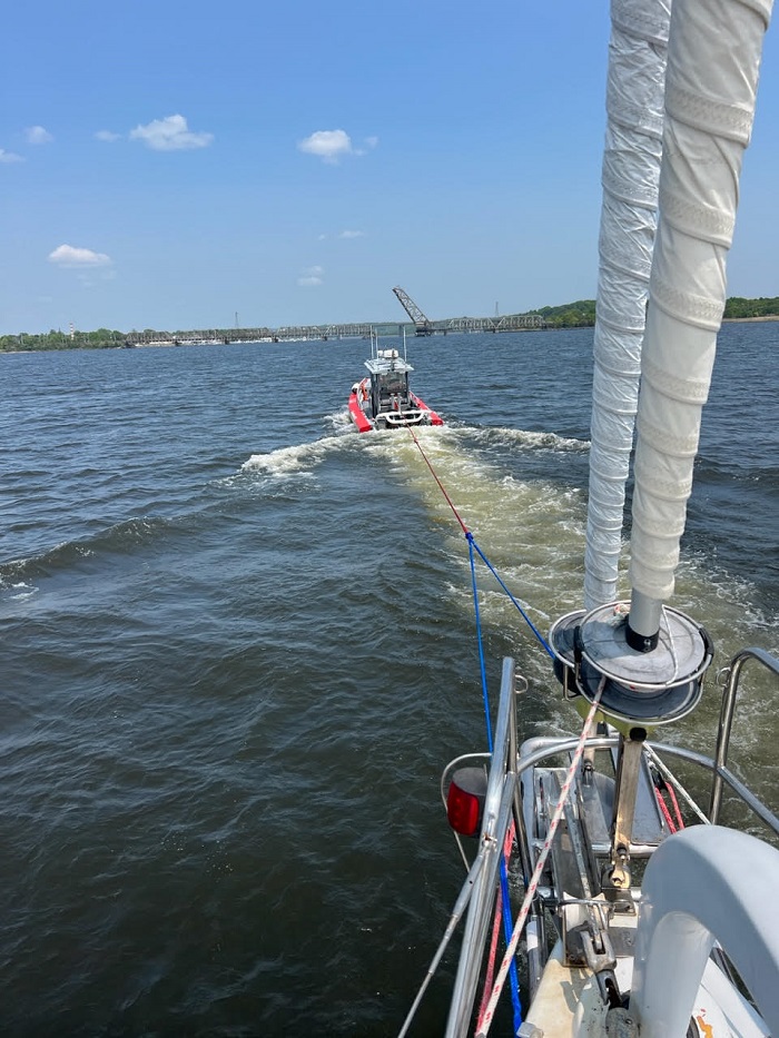 However, this year, it didn’t disappoint. Finally, as we entered our 11th day at sea, the Saybrook Light marking the entrance into the CT River.We continued up the river, dropped the sails and contacted the Old Lyme Drawbridge.  George, who was at the helm, put the engine in neutral.