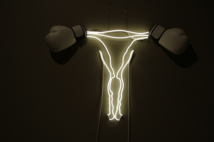 What does it mean? Perhaps, something about “punch me I’m a woman”. Perhaps more PC, “I’m a woman. Mess with me and I’ll punch your (neon) lights out.”