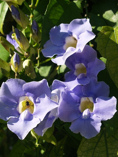 House color isn’t the only thing that’s much different than at home. On the arbor along the white fence, is this great vine. I don’t know what it is called but some folks in Essex grow it in the summer. Here, it’s a perennial Nice that they were able to color coordinate the flowers with their house color.
