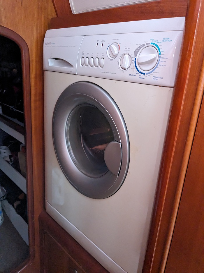 Among the items that I run directly from my inverter. Note that we don’t even have a house generator. A washer. No, not the dryer but we don’t use that and let the relentless wind in the Caribbean dry things. This unit doesn’t draw much power in wash mode anyway.
