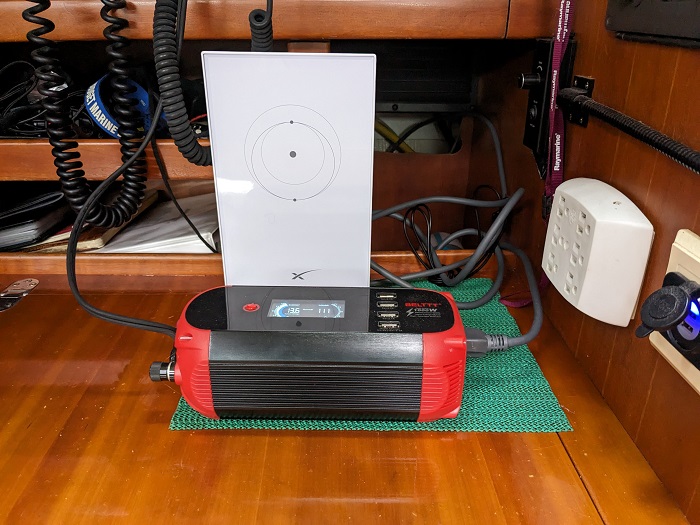 Our Starlink, a pretty power hungry unit that I power from a small 600w plug in inverter.
