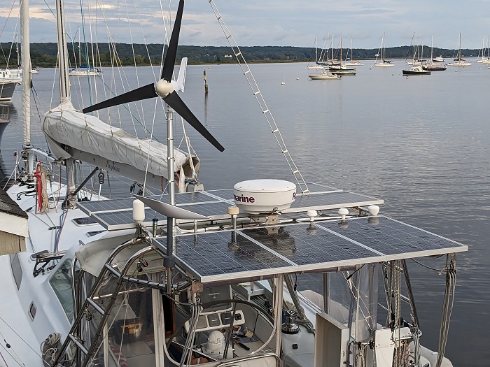 And, all this, in addition to the wind generator and the lithium bank, I now have enough power to run everything on the boat directly from the batteries, all maintained by wind and sun.