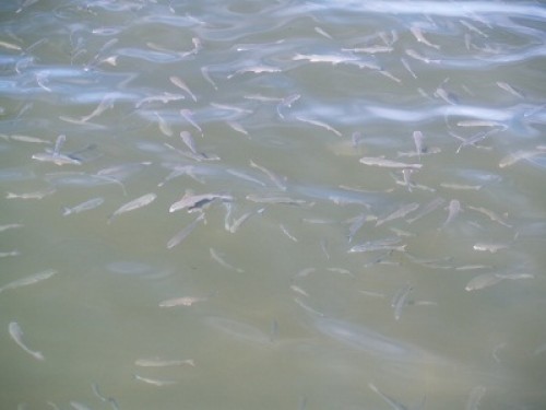 Around the town dock, thousands of mullet congregate because the pilings and dock structure give them some cover and shade to hide in. The fish in the schools run from a few inches to around one foot long. I got a kick out of seeing so many of them in such a small space. In this part of the school, these are all about a foot long. This photo doesn’t really show how many there were but trust me when I say that there were plenty.