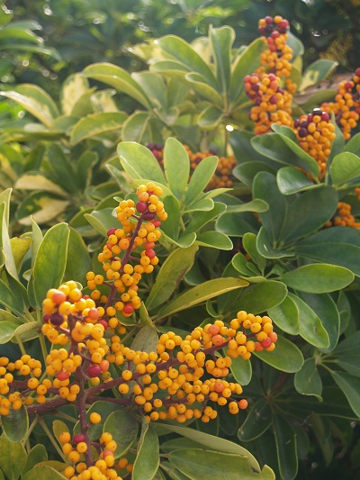 Switching the subject, have you ever wondered what would happen to that schefflera plant that you have in your living room would look like if it was planted in your lawn? Me too. Here’s what happens when one is happy. Pretty impressive. So, call me a sheltered New Englander, but I am enjoying seeing new things. Simple pleasures for simple people.