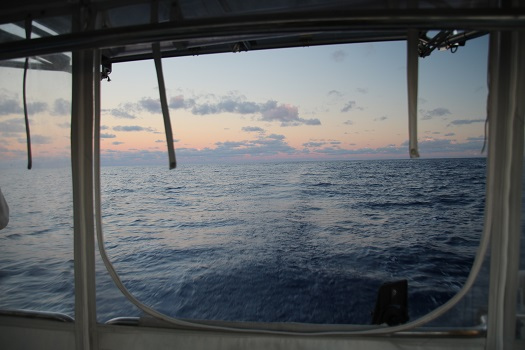 The good news is that we are inches, feet, miles, a degree of latitude, well, at least some distance from the trade winds. The wind was VERY light overnight but now it is beginning to fill in from the NE. According to Chris Parker, our weather router, and the most recent GRIB files, we should begin to see sailable wind from the east within the next 40-80 miles, hopefully sooner.