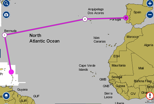 The run from the Caribbean to Portugal totals about 3,700 miles. Leg one, about 900 miles to Bermuda where perhaps I’d do a crew change. Then across to The Azores, another 2,000 miles and from there to Portugal.
