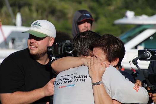 Seeing them step on shore for the first time in over a month of rowing is quite a sight.
