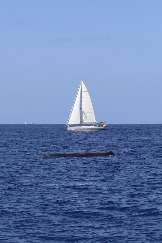 So, imagine what might be the most unlikely shot and I doubt that you would ever imagine a photo of a whale AND your boat in the same frame. Well, I suppose that nowadays that’s possible with AI but the photo below is real and taken by a fellow cruiser the other day as we moved along the lee of Dominica.