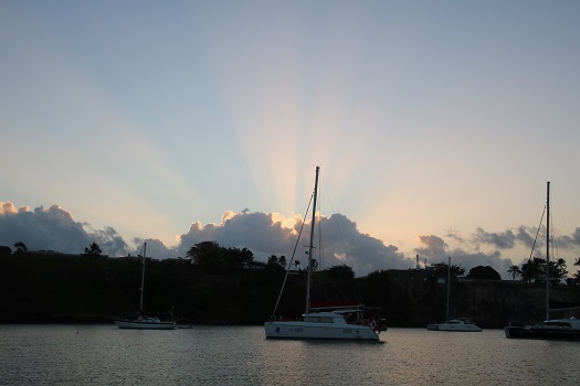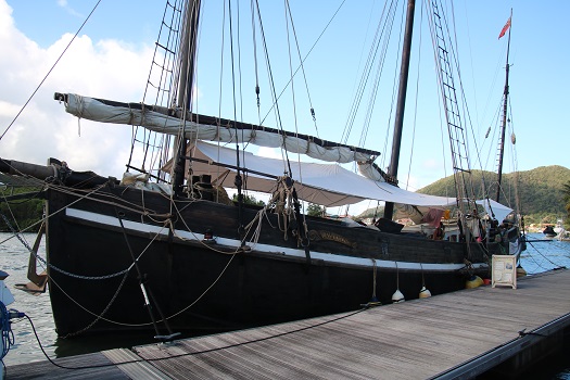 She’s a reproduction of an 18th century lugger. Here’s what their site has to say about her. As luck would have it, when we departed for Martinique, she was underway as well. A beautiful site and was moving along at a good clip.