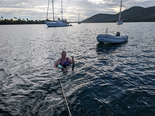Of course, there’s plenty to do that doesn’t use power including a swim off of the back of Pandora. It’s hot here and as spring approaches will be a bit hotter so spending time cooling off is a near daily ritual.