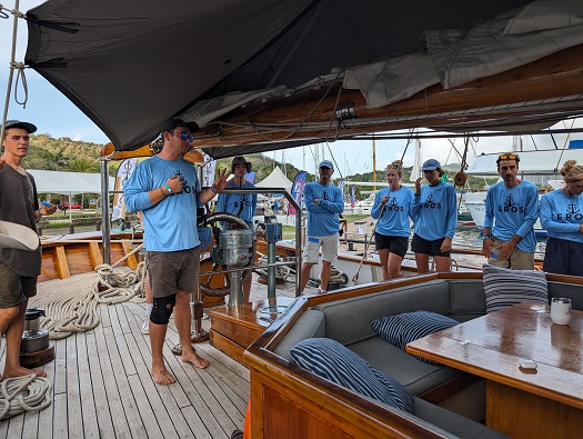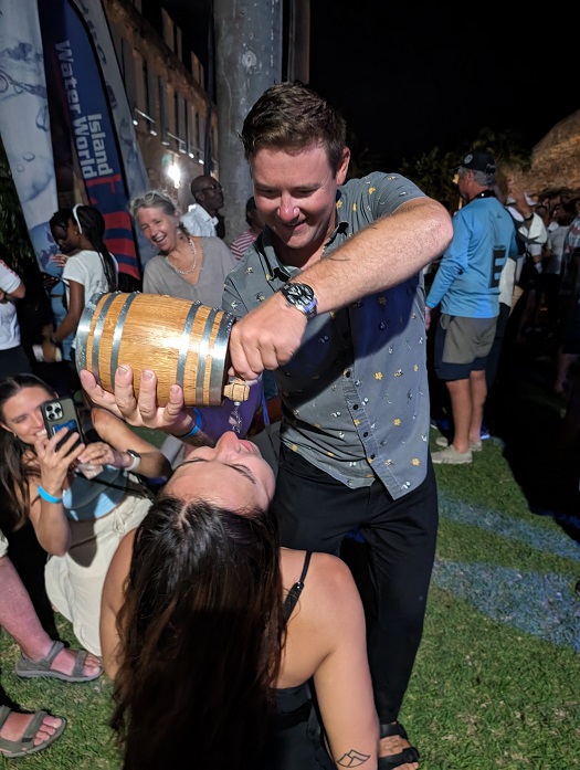 The prize to Eros, second in her class, was a “keg” of rum. Colin was quick to share it with the crew. Me too… As you can imagine, it got a bit rowdy but in a good way. Rum tends to do that to people. My apologies as I don’t know who took this photo. Perhaps it was the rum…