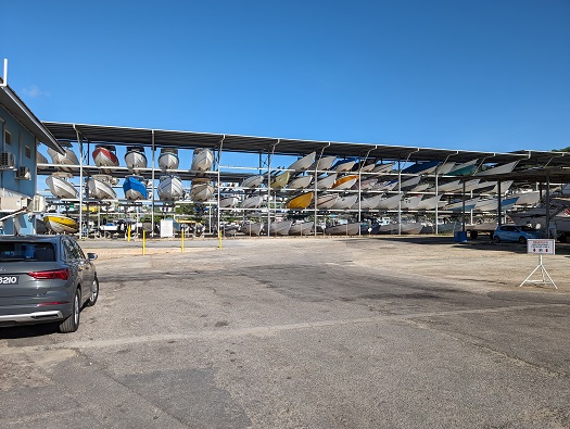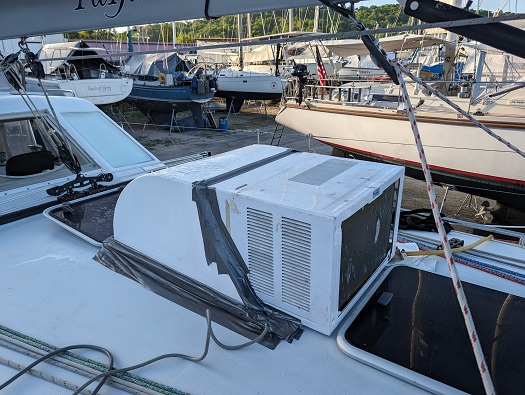 And, the air-conditioner is installed and pumping cold air down below. So much for “island time” so far. I arrived in the morning, checked in, arranged to have Pandora hauled with AC was installed before the end of the day. Setting aside the clearance process, this place is pretty efficient.