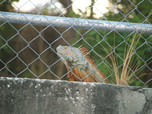 How about iguanas? This guy was about four feet long. No, he wasn’t in a cage, just keeping an eye on us from the other side of a fence closing off a vacant lot. And, he’s not the only one there.