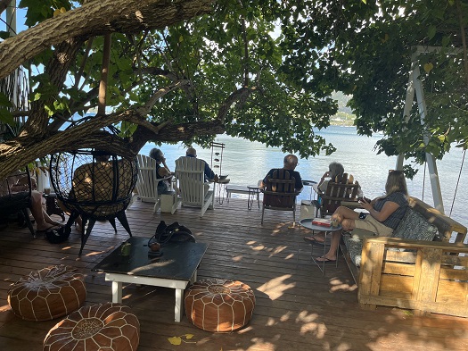 This morning Brenda and I headed ashore for coffee at this lovely waterside café. I had learned about this place, tucked into the head of the harbor, from a friend and it was the first time that Brenda visited with me. Very charming.