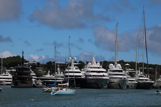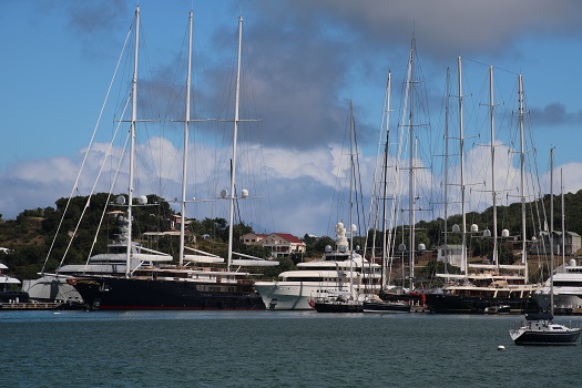 One thing that’s worth noting is that in spite of having “more money than God”, sometimes they can’t get a spot at the dock. I was told that all slips in Falmouth and English Harbor, when it comes to mega and mega, mega yachts, have been booked for months. Nahlin moved into a slip a few days ago and Black Pearl still sits out on anchor.