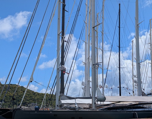 However, some owners don’t have to worry about all that. Sure, their boats are being fixed in exotic places but not by them. They just write checks. Well, actually their “family office” writes checks. A good example is Jeff Bezos’s boat Koru, on the dock here in the harbor, is surely having stuff fixed. She’s the big black sailing yacht on the left with the three masts. At least for now, she is the largest sailing yacht in the world. I say “for now” as just about every year a new biggest one is launched. What’s the fun of being a babillionair if you don’t have the biggest yacht?