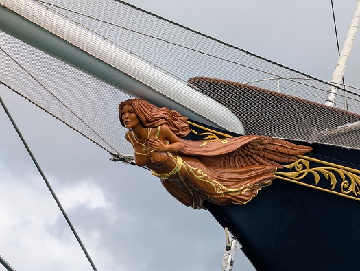 To give you a feel for the differences between these two boats, while they are sort of the same length, Black Pearl is massive at 2,964 gross tons and Nahlin, a puny 1,356 gross tons. Do note that Nahlin is farther away in this photo but she’s much more svelte than Black Pearl in spite of her 300′ length. Of course they are both big compared to Pandora at a micro-puny 14 tons.