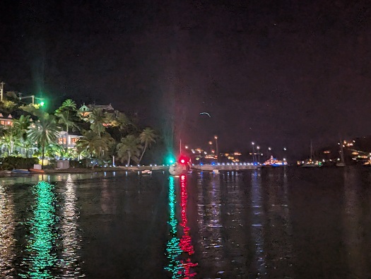 Later that evening another group of rowers, and I am unclear as to where they were from and which race they were a part of, arrived in Falmouth Harbor. Brenda and I happened to be heading back to Pandora when they approached out of the darkness.