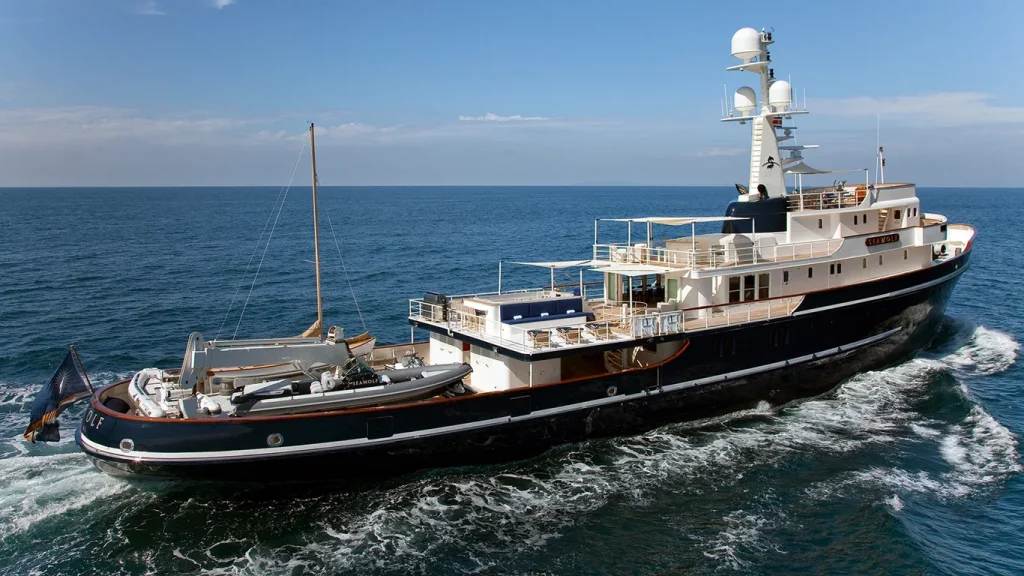 Under way. A beautiful go-anywhere yacht that has clearly been everywhere.