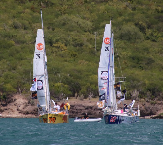 By way of contrast, some of the Caribbean 600 race boats were out practicing. Their crew involves more individuals than the entire fleet of minis, by about double.