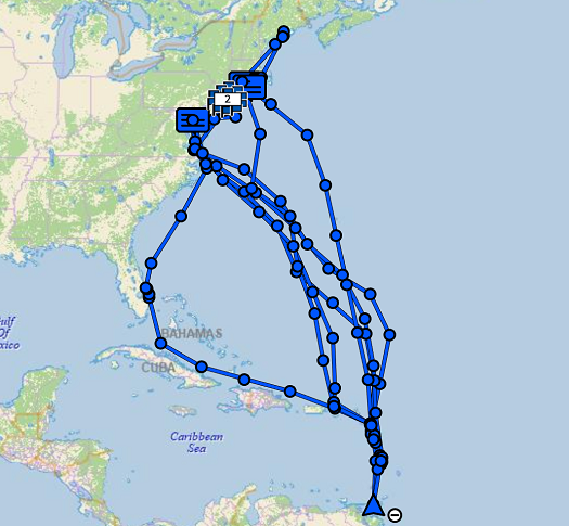 This screenshot from my Garmin InReach shows Pandora’s tracks every season from the beginning of the pandemic until this current season. That’s a lot of back and forth. The run to the west from the US Virgins to FL, via the Old Bahama Channel, was our track back to the US when crew was not available.