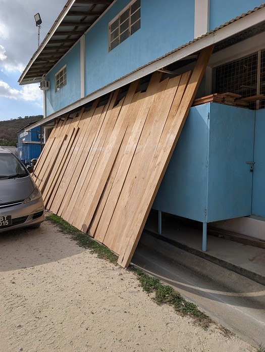 The local craftsman are known for their woodworking skills and they use a LOT of teak. It’s is sourced here in Trinidad and is farm raised and harvested from trees that are about 75 years old. These boards easily weigh more than a hundred pounds each and a single piece one foot square and 2″ thick costs more than $20. Each board is worth in the neighborhood of $800-$1,000 and a boat can use a lot of teak. A friends of mine are getting new teak decks on their boat and the installation is likely to cost somewhere in the $60,000 range. And that assumes that everything else is AOK on their boat. Big job.