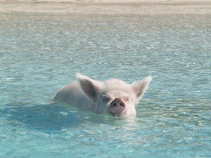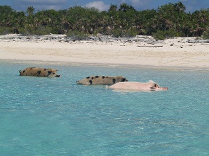 We also visited with some of the local residents who were wading out into the water hoping for a treat.  These pigs are a local attraction and are always happy to visit with anyone offering handouts.  These guys are really big, weighing several hundred pounds at least, and certainly couldn’t be convincing stand-ins for the three little pigs that we all know and love.