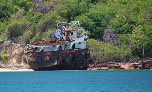 Benign as the weather is this time of year, it is hard to imagine the immense power of a major hurricane if and when it hits the island. There is a wrecked fishing boat on the beach nearby as a testament to the power of waves.