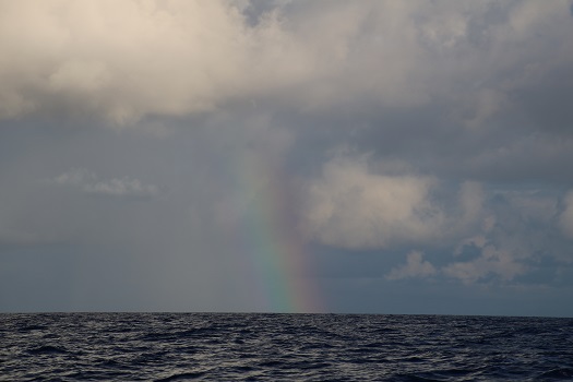 After a small squall passed us just after dawn, a sliver of a rainbow.