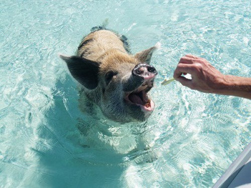 Remember the pigs on Big Major I wrote about the other day? These porkers will happily take the food out of your hand. Happily, not chunks of skin taken along with the snack.
