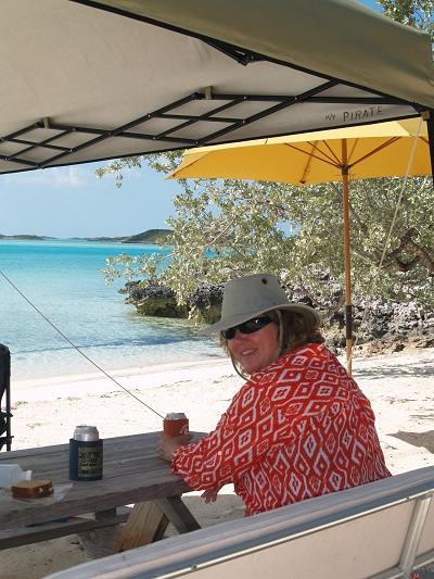 After feeding them we headed over to a great spot where some cruisers had set up a tent and chairs. What a great view to enjoy a sandwich with. Catch those James Bond shades. Appropriate given the proximity to Thunderball Cave. Looking cool in the shade?