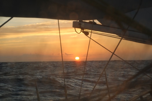 And, as the sun peaked over the horizon, I was a bit surprised to see the sun coming up over our bow.