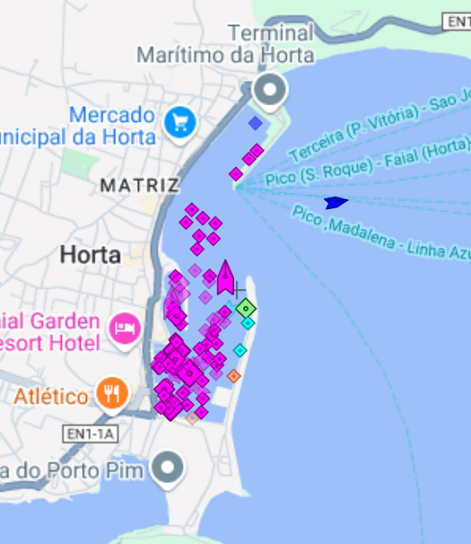 There is a lot of boat activity approaching Horta as this is “the” place to make landfall. This shot of AIS on my plotter shows so I can see that we are not the only boat heading that way.