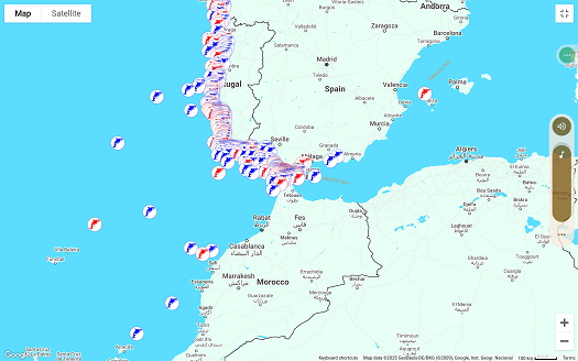Additionally, most reports of sightings are near the southern coast of Portugal and less far offshore between Portugal and Morocco. That area, about 100 miles from shore is also where the commercial shipping lanes are located and my plan is to transit that area.